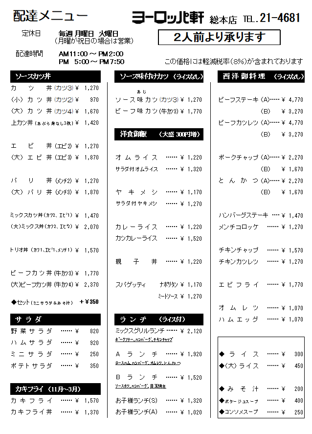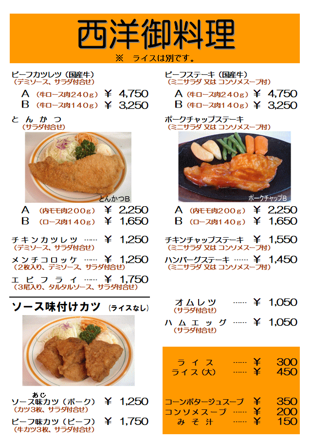 各分店では、メニュー・価格が異なる場合がございます