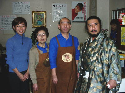 | 当店には 名古屋章さん、松村邦弘さん、トゥナイトなるみさんがいらっしゃって、 カツ丼を食べて行かれました。 他にもご近所のお店に 池乃めだかさん、石田靖さん、松田純さんが撮影に来られ、 お昼のお弁当をお持ち帰りくださいました。 |