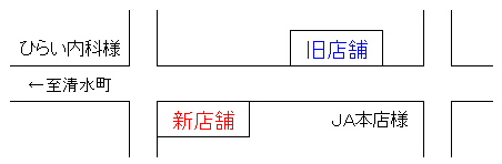 | 拝啓 陽春の候、皆様方にはますます御健勝のこととお慶び申し上げます。 おかげさまで当店も、今年15周年を迎える事ができました。 これも一重に皆様方のご愛顧の賜物と厚く御礼申し上げます。 さてこの度、念願でありました新店舗が完成し、 4月18日(木)移転オープンの運びとなりました。 皆様方には、今後とも更なる御指導、御鞭撻、お引立ての程宜しくお願い申し上げます。 |